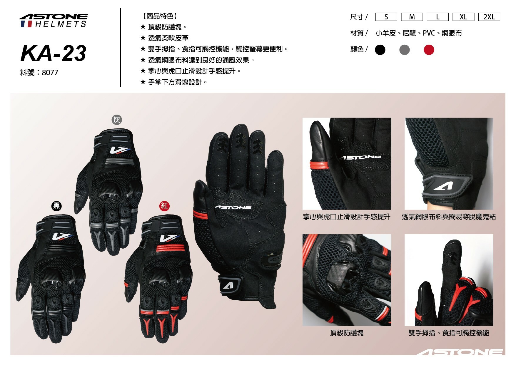 ASTONE KA23 黑 皮布手套 網眼 可觸控 手掌滑塊 短手套
