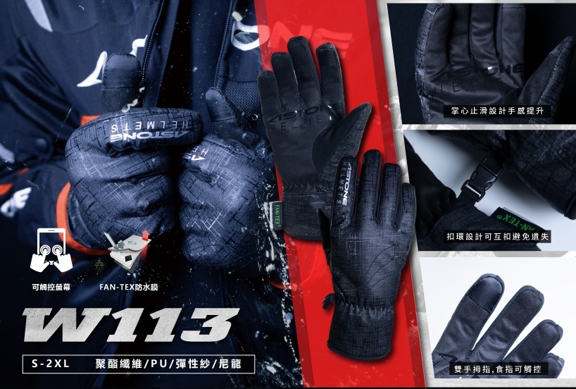 W113 防潑水手套 防曬 防風 舒服又可水洗,防潑水材質不易淋濕,品牌LOGO具有防滑設計。