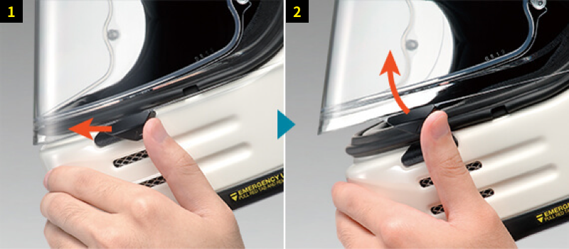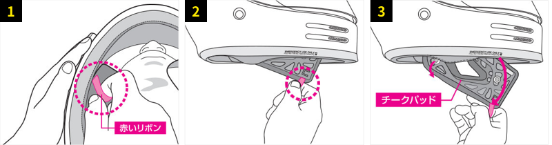 通過拉出固定臉頰的臉頰墊,您可以輕鬆地將頭盔從騎士身上取下。