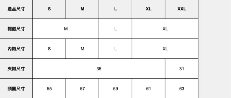 頭圍尺寸單位(cm)