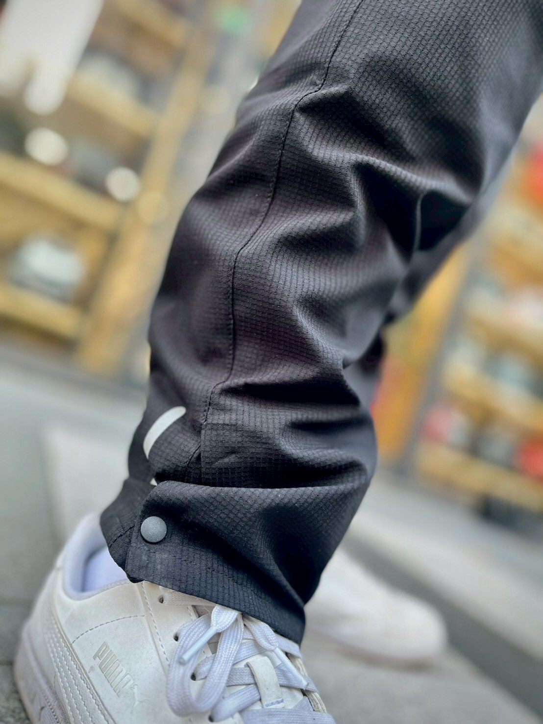 腳踝處有鈕扣,可以依照鞋款加寬/收窄褲腳,打造休閒時尚外觀